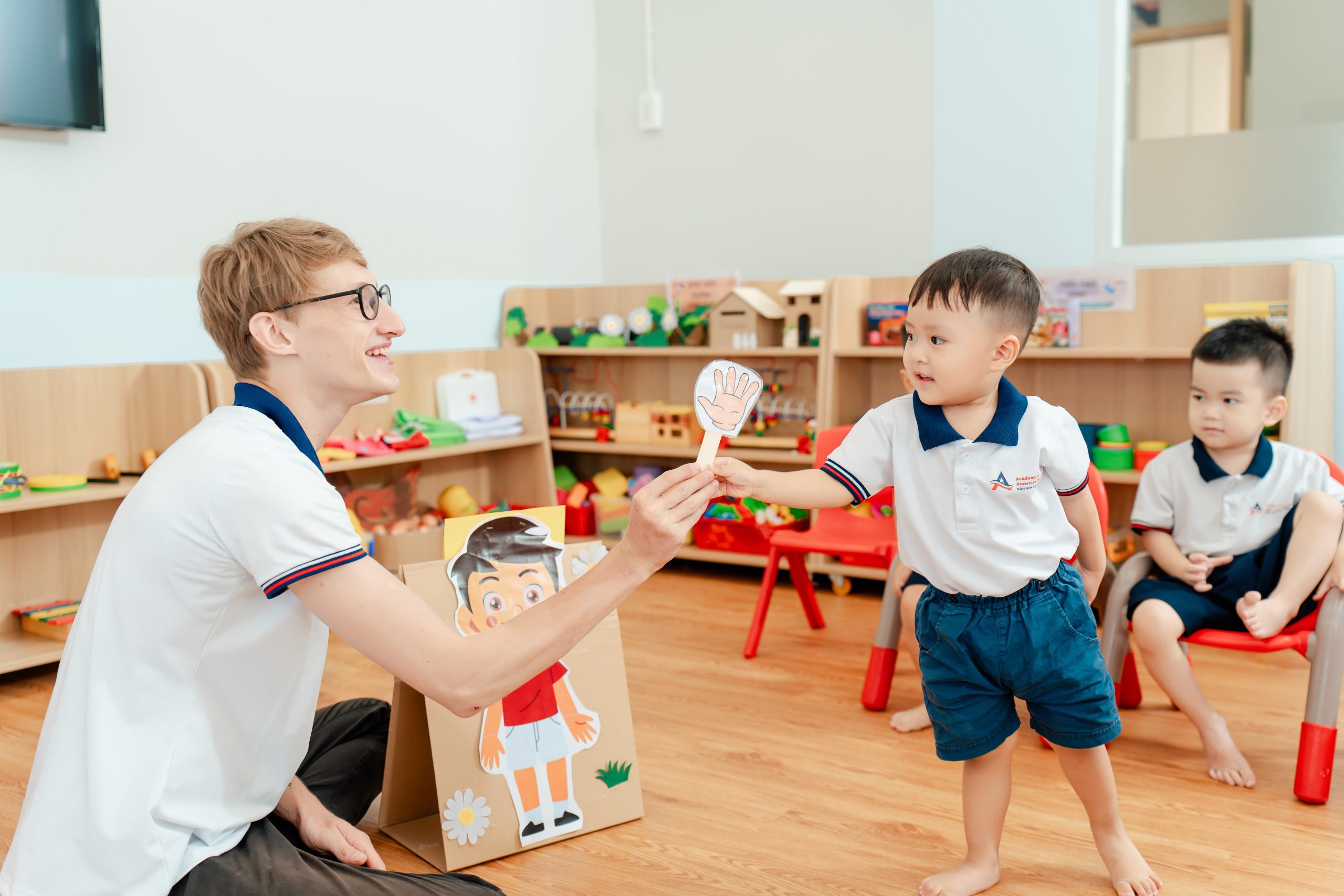 Mỗi tiết học theo phương pháp HighScope (Mỹ) là một hành trình khám phá, nơi Con được chủ động tìm tòi, đặt câu hỏi và tự giải quyết vấn đề. Các giờ Tiếng Anh ESL chuẩn quốc tế với sự kết hợp giữa giáo viên bản xứ và Việt Nam tạo nên môi trường song ngữ tự nhiên, giúp Con hình thành phản xạ và tự tin giao tiếp. Ngoài ra, các buổi ngoại khóa, dã ngoại và trải nghiệm thực tế còn mở ra một thế giới phong phú, nuôi dưỡng tinh thần khám phá, sự kiên trì và lòng thấu cảm.
